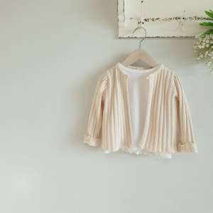 Этот нежный кардиган — изысканная вещь, идеально подходящая для того, чтобы добавить слой комфорта и элегантности к любому детскому образу. Отличаясь чрезвычайно мягкой и лёгкой текстурой, он выделяется трикотажем типа pointelle, который придаёт изделию воздушный и утончённый вид, делая его идеальным для весенних или летних дней.